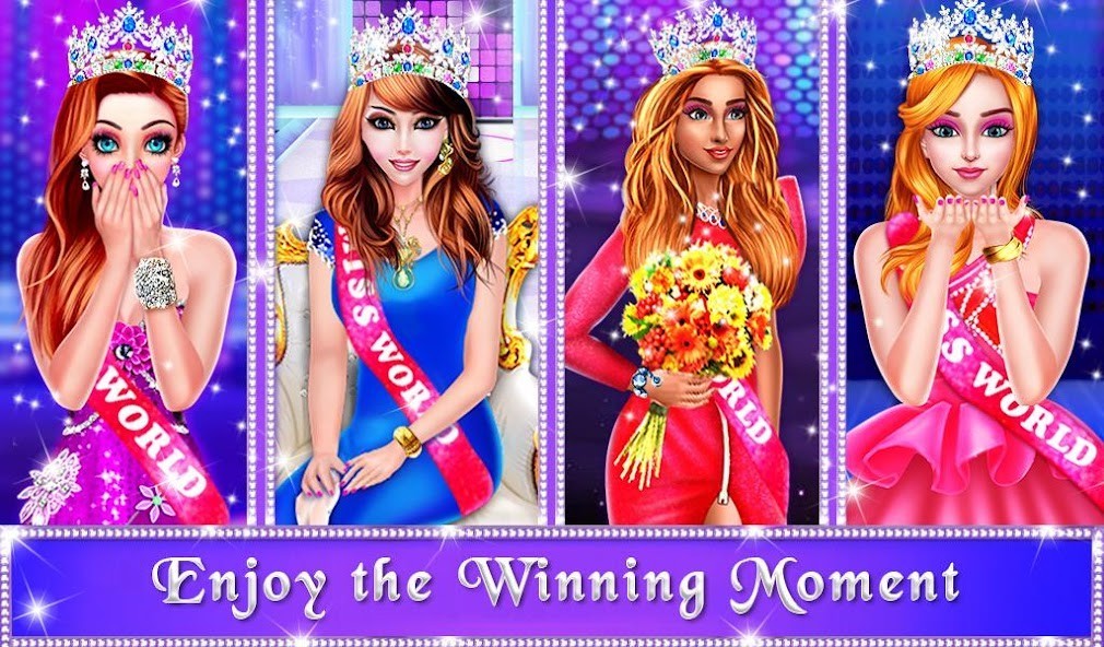 Play this free girls game to feel the winning moments with different country's contestant. In this miss world game for girls, you can play the contestant's role from different countries. Contestants have to be fit and maintain their self in the girls gym game. You need to clean up the whole stage and decorate the stage with different lights in this cleaning game. In this decoration game, make sure judges will like contestant's work of decoration. There is a certain spa which will make the contestant's body look too good in this spa game. Makeup is important for an attractive look in this miss world makeover game. So do proper make-up in this miss world makeup game. Contestants' identity in society is also very important for the fan following. Perform a proper dress up in this swimsuit dress up game. There are different talent-sports like skeet shooting, running, and table tennis. In a skeet shooting game, you need to shoot some skits in a given time. In a table tennis game, you need to play with an opponent and score more to win. In the running game, you need to collect coins while running. So give your best to win this girls sports game.For the fabulous dance performance, you need to dress-up first in this dancing girls game. So bring your county's tradition on the stage and do a fantastic catwalk in this miss world dress up game. After that, there will be the last question answer view to judge the contestants. In this miss world competition game, enjoy the winning moments and a crowning moment with amazing animation. In this miss world photoshoot game, all the 3 finalists will have a photoshoot in front of the media.